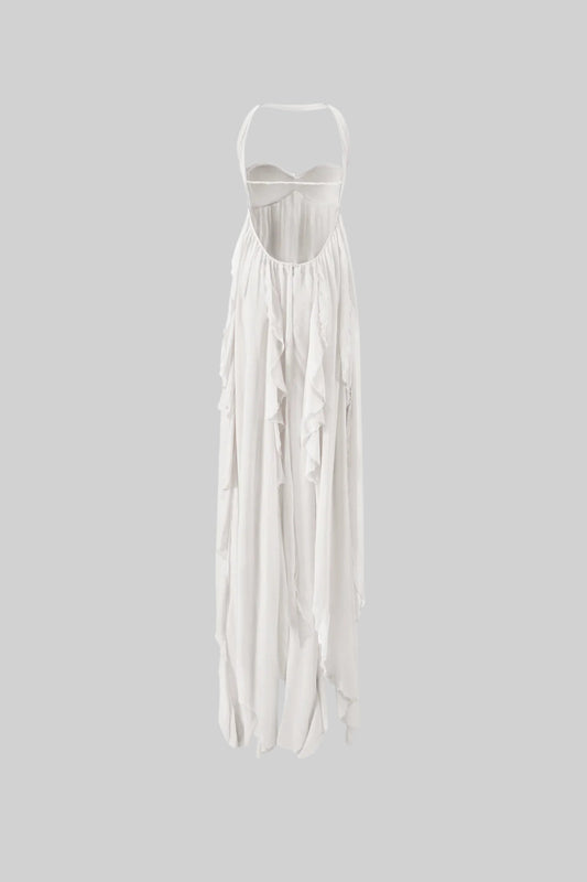 Allure Strapless Gown With Flowing Layered Skirt And Asymmetrical Hemline - White