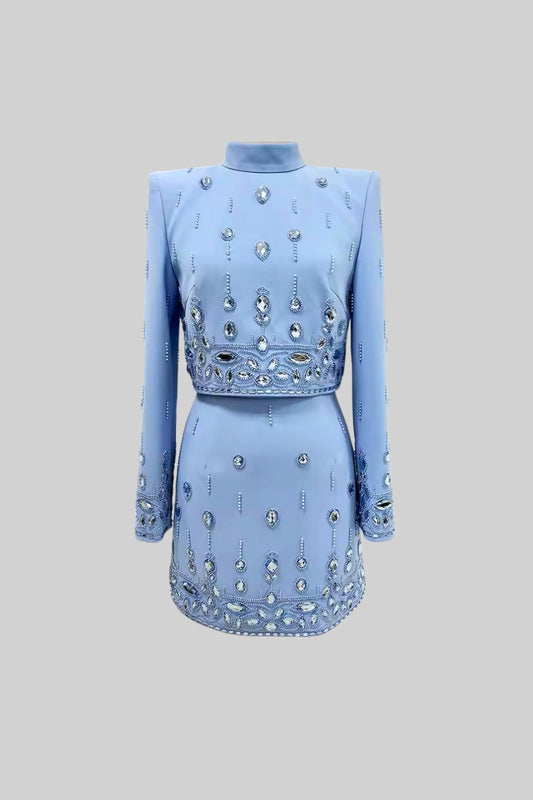 Diamond Embellished Co-Ord with Mini Skirt - Baby Blue