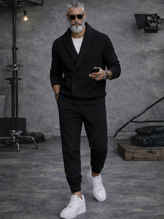 Casual Shawl Collar Knit Top and Pants Set