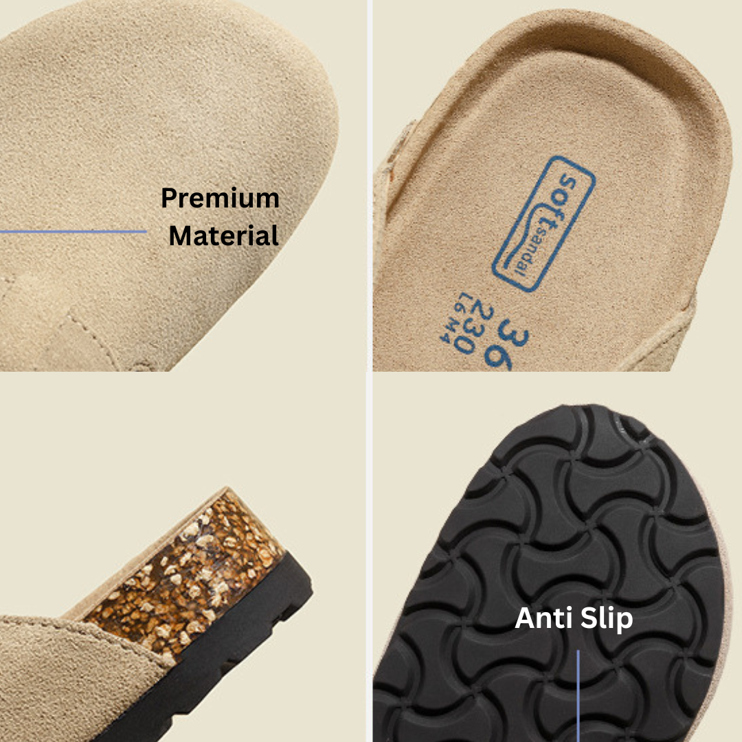 100% Genuine Cow Suede Footbed with a Super Soft PU Style upper straps, fitted with a solid, fully adjustable buckle.